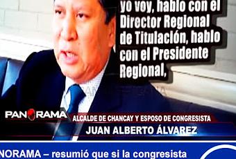 Acusan al Alcalde de Chancay Juan Alberto Álvarez y su esposa la congresista Gladys Andrade de intentar vender un terreno de 17 hectáreas, sin título de propiedadFue presentada por el programa dominical como una congresista fujimorista que sin oficio conocido, logro de pronto una curul para representar a la región Lima. Se trata de Gladys Andrade. La parlamentaria naranja ha sido acusada por “PANORAMA” de pretender vender un terreno de 17 hectáreas en el norte chico, sin título de propiedad.