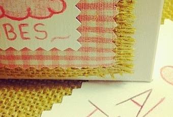 A little white cardboard box, burlap and Vichy fabrics, a pair of scissors, crayon (ohh it's so pleasant "come back to school" when we're drawing, also if one draws badly as I do), white twine and this is the result.