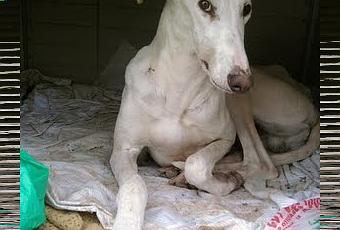 ALGODÓN es un galgo en los huesos, muy desnutrido, como podéis ver. Su pérdida fue denunciada en el 2008 pero tras dos años ha sido encontrado con el chip, ¿cuál es la sorpresa??? Su dueño no quiere saber nada de él.