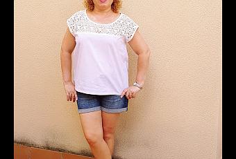 Teniav un trozo de guipour de color blanco que no sabia que hacer con el , porque no salia una prenda completa asi que decidi combinarlo con un retal de algodon de clor blanco y la combinacion no puede gustar mas .