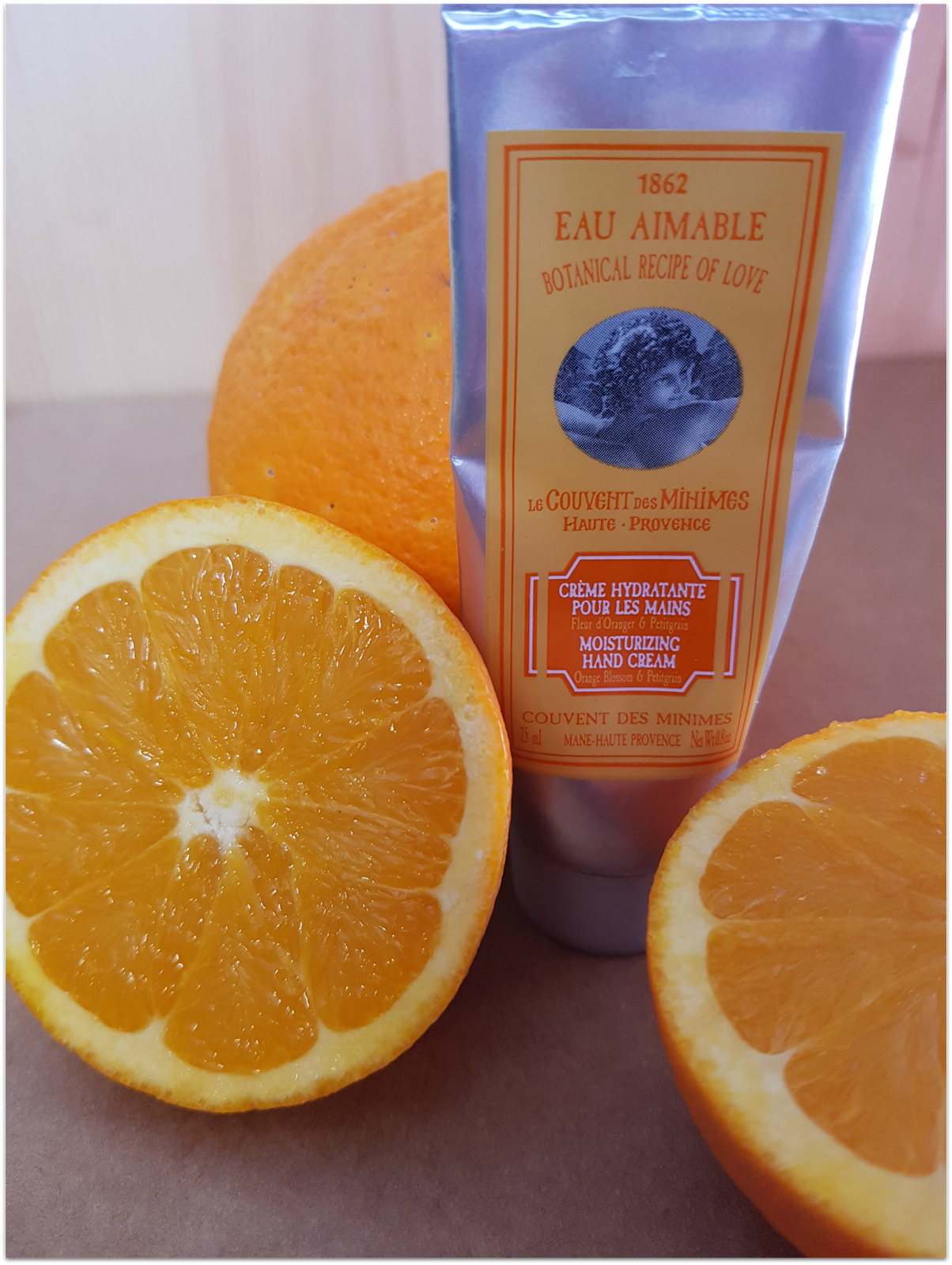 Con olor a naranja me compré esta crema de la marca Eau Aimable. Es la que menos me gusta de las tres aunque huele muy bien. La compré en el Corte Ingles, como veis está algo usada pero es que pulula en mi bolso desde el mes de noviembre.