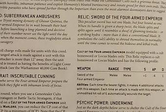Seguimos con Warhammer, pero ahora saltamos a W40K con unas filtraciones de las que se han hecho eco en Faeit212.Las filtraciones son del codex Cultos Genestealer de 9ª ed (Si,el que se pone en pre-pedidos hoy) en inglés y se han visto en este link. Son las reglas de cuatro cultos arquetipicos o culto mayores de los Genestealer.