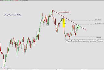 Destacan los movimientos entre la directriz bajista y la alcista, en un espacio que a medida que transcurren las sesiones se va estrechando al acercarse ambas líneas. Para bien o para mal, creo que queda poco para resolver, así que esperaré pacientemente la resolución.Y por último, os dejo el gráfico de velas diario actualizado para Bankia. Mi preferida en el corto plazo y superando niveles clave a mi juicio en los 3.38 euros.