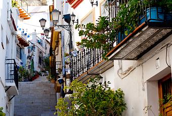Vamos a darnos un paseo por el barrio antiguo de Alicante, el barrio de Santa Cruz, el barrio donde nacieron las primeras calles de Alicante, Carrer de Dalt, Carrer del Mig, Carrer de Baix… Calles empinadas con aires moriscos, con casas de diferentes colores adornadas con macetas repletas de flores. A que no parece que estemos en Alicante??