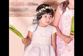 Como inspiración de nuestro vestido de comunión Carmen, nace el diseño de ceremonia Alicia. Lino italiano, encaje de bolillo en mangas y cintura y un corte que sienta como un guante a las más pequeñas. El fajín está realizado a base de bolillos cosidos cuidadosamente a mano.Alicia es el nombre de una niña que vivía en el País de las Maravillas, como merecen vivir nuestras niñas… Alicia se llama la protagonista de Gran Hotel, una serie de TV con un vestuario impecable en el que nos gusta inspirarnos. Tuvimos la suerte de conocer a Helena Sanchís, la artífice de elegir esas obras de arte, en Something Old y sorprende el trabajo tan minucioso que hay detrás de cada modelo. No sólo es televisión, es una recreación perfecta de la Belle Epoque española.Podéis elegir el tono que más os guste: blanco, blanco roto, tostado, arena… y combinar el traje de arras de niñas con el de niño jugando con los contrastes. El resultado será un cortejo digno de ser recordado…Y, aunque lo bello, no tiene que ser funcional, con ser bello basta, con el vestido Alicia, las niñas podrán jugar, correr y disfrutar de la fiesta, porque, además de bonito, es cómodo.Gracias a Bodas y Bebés por estas imágenes…