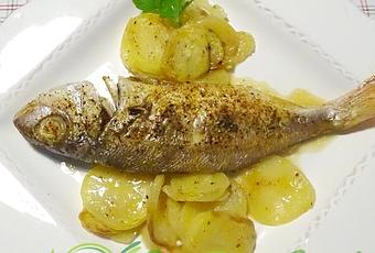 Aligote al horno con patatas. Quizás también te interese ver otras recetas de pescado al horno como Ventresca de bonito al horno.