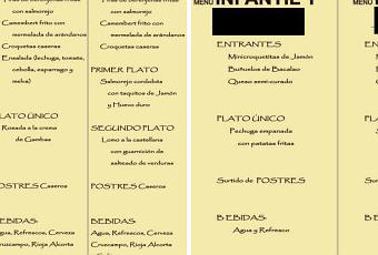 ejemplo de menú para adultos y menú para niños en el mismo restaurante
