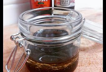 Mezclar en un recipiente pequeño la misma cantidad de los tres ingredientes. No debéis añadirle sal puesto que la salsa de soja ya es suficientemente salada.