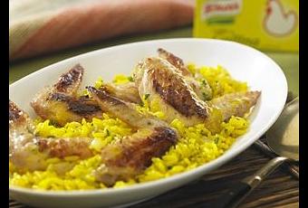 - También se puede moldear el arroz en flaneritas y cocinar las alitas al horno.
