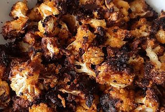 Partir la coliflor en ramilletes, echarle la salsa picante y el resto de ingredientes , en vez de salsa picante, yo le he puesto la salsa de pimientos de @mariapelazas y yo de picante, le he puesto el pimentón picante y pimienta de espelette.