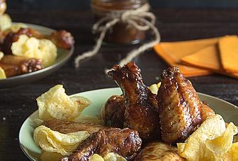 500 gr. de alitas de pollo; Sal y pimienta; Marinada 45 gr. de miel; 30 gr. de azúcar moreno; 20 gr. de salsa de soja; 30 gr. de ketchup; 15 gr. de mostaza