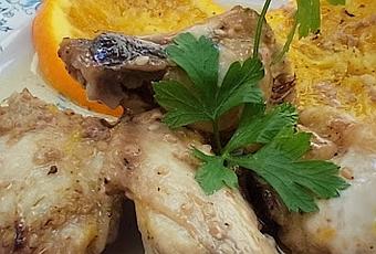 Este mes he preparado alitas de pollo maceradas con naranjas. Para acompañarlas también he confitado las naranjas en microondas. Una forma muy sencilla de hacerlas, aportando color, sabor y categoría al plato. Las naranjas confitadas suelen hacerse dulces pero yo he preparado una versión salada en microondas. Son ideales para acompañar quesos, aves, lomo de cerdo y ensaladas de hojas verdes, picadas finas pueden servir para aportar sabor y enriquecer un cuscús especiado.
