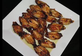 Elaboración:En una fuente apta para horno, echamos un chorro generoso de aceite, colocamos encima las alitas salpimentadas y les echamos el zumo de los dos limones por encima, luego colocamos los limones entre las alitas, así como las hojas de laurel y los ajos.