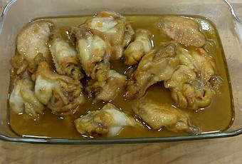 - En un bol grande echamos las alitas y vertemos encima la salsa. Lo dejamos macerar 3-4 horas en el frigorífico.