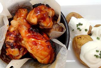 Sirve las alitas recién hechas con un poco más de salsa, acompáñalas con las patatas asadas y un poco de crema agria y dá buena cuenta del menú mientras ondea la bandera de barras y estrellas. Cuando termines puedes relamerte los dedos...