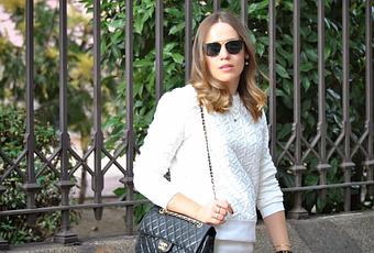 Me apetecía combinarla en un look 'total white' y darle el toque rockero con los complementos. Además, he rescatado mi 2.55 que hacía mucho que no veíais por aquí, y creo que es perfecto para este look. ¿Qué os parece?