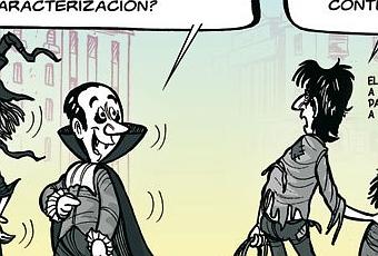 Esta viñeta describe de manerainmejorable a una parte de la población en la que se incluyen gobernantes, empresarios y banqueros disfrazados y dispuestos para celebrar la gran cosecha que están teniendo con esta crisis, mientras que la otra parte de la población lucha por sobrevivir.