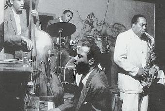 Puede que estén tocando What is this thing called love? o All the things you are. El gordo del traje blanco es mi favorito, es Charlie Parker, quizá el que llevo la etiqueta de maldito más a la vista, el que voló como un pájaro, el que hizo que Cortázar le metiera en un cuento, el que hizo que un blanco de aquella época abriera mucho los ojos y abriera mucho las orejas, porque aquella música era celestial.