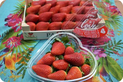 Desde aquí, quiero agradecer a Mariano y sobre todo a Tere, que me hayan hecho llegar estas cajas de fresas preparadas por ella misma. Las fresas eran tan espectaculares, tanto en tamaño, como color y sabor, que pena me daba usarlas en otros postres. Por eso decidí ponerles un poco de cobertura de chocolate. Solas, ya eran una delicia y con éste detalle, un verdadero manjar.