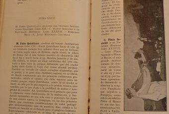 la inconografía de este cuadro no está muy lejos de las viejas escenas simposíacas que encontramos en más de una cerámica griega. Todo es calma en la obra. Lo recuerdo desde la primera vez que acudí al Casón, y fue gracias a él por quien conocí la pintura de Alma Tadema. Un pequeño gran tesoro que volvió a la sombra de los almacenes al cabo del tiempo. Muchos años después, mi afición al estudio de los manuales de literatura me llevó a un libro de 1928: Eustaquio Echauri, Literatura latina, Barcelona, Ministerio de Instrucción Pública y Bellas artes (Joaquín Horta, imp.), 1928. Es uno de los típicos manuales del período que denominamos "La Edad de Plata de la Cultura Española". Está destinado a los estudiantes de un bachillerato hoy mítico (de hecho, hay otros excelentes manuales contemporáneos pensados también para la enseñanza de la literatura latina, como los de Vicente García de Diego, Pascual Galindo o Yela Utrilla) y está compuesto por uno de los mejores latinistas de la España del momento, Eustaquio Echauri, conocido también por haber compuesto un diccionario de latín con José Manuel Pabón: el diccionario Spes. No voy a hablar hoy de las polémicas académicas e ideológicas de Echauri con personajes como Américo Castro o Joaquín Balcells, a lo que me dedicaré otro día. Sólo quiero comentar la emoción que me supuso ver reproducida en su manual la estampa del cuadro de Alma Tadema. Recuérdese, estamos en el momento en que los manuales escolares comienzan a incorporar imágenes como un hecho normal. El desarrollo editorial del siglo XIX permitió el uso de la cromolitografía y el huecograbado. La editorial Montaner y Simón fue la primera que generalizó las ilustraciones. Ya en el siglo XX, editoriales como Labor hicieron de la ilustración un pequeño arte. El manual de Echauri es hijo de su momento, en este sentido. Sí me sorprende, no obstante, el uso particular de algunas imágenes que le dan un aire castizo al libro. Es significativa, a este respecto, la aparición de la diosa Cibeles, la madrileña. Asimismo, creo que el cuadro de Tadema tampoco es ajeno a la conciencia de su pertenencia al Museo del Prado. El título que figura a pie de página es "Escena pompeyana". Veo que en la actual ficha del cuadro publicada por la Enciclopedia del Museo del Prado consta como primer título, seguido entre paréntesis por "La siesta". Precisamente, el título de "Escena pompeyana" es el que da lugar a que la ilustración venga junto a la vida de Plinio el Viejo, cuya conocida muerte durante la erupción del Vesubio ha pasado a formar parte de uno de los capítulos estelares de la propia historia de la literatura latina, junto a la muerte de Lucrecio, el exilio de Ovidio o la muerte de Virgilio.