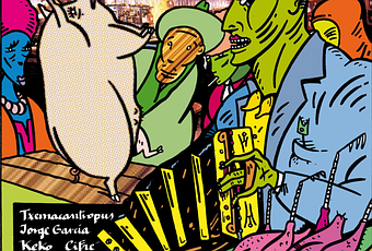 Un tebeo coral que sería de obligada lectura sólo por las contribuciones de apertura que entregan un Auladell en estado de gracia acompañado de Pedro F. Navarro o un Keko inspirado que sigue la incisiva pegada de esa obra maestra que fue La casa del muerto. Dos entrantes de contudencia saciante en el menú, parece, pero la cosa no se queda ahí y Micharmut se destapa con dos platos de esos que Nestor Luján o Manuel Vázquez Montalban glosarían con prosa cuidada y precisa. El primero, con la anuencia de Felipe Hernández Cava, componiendo una degustación múltiple que se atraganta a golpe de realidad de corredor de la muerte, trasladando la búsqueda del alma del momento de la muerte al momento de la última comida, analizando con el mismo cuidado de una autopsia los alimentos que rellenarán las vísceras del futuro finado. Y el segundo, uno de esos ejercicios de experimentación radical que sólo Micharmut es capaz de hacer, jugando a las variaciones sobre un mismo tema para intentar descubrir la realidad que hay tras la foto oficial del banquete, creando misteriosos hilos dinámicos de acción que sólo se pueden ver en el instante congelado de una viñeta. Y no se piensen que la cosa termina ahí, porque Txemacantropus, Cifré y Jorge García y Gustavo Rico cierran el ágape con aportaciones tan acertadas como apetecibles.