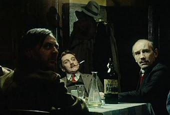 En este último tramo la película salta del bar a un centro de detención y tortura del régimen de la Cruz Flechada, donde los prisioneros son solo peones de una partida más compleja que la mera culpabilidad o inocencia personal. Son el régimen y la utilización que este haga de todos los elementos a su alcance para preservarse en el poder los únicos valores que cuentan, y por tanto, desprovisto de todo cuestionamiento ético, opera conforme a estos intereses por encima de pormenores como son la responsabilidad de los detenidos. A partir de este punto, en particular en la conversación que mantienen el comisario y su oficial, es donde la película representa el manual del perfecto fascista: más que la muerte inútil de unos detenidos que no reporta más que el dolor particular y privado de sus allegados importa el uso de esas detenciones y de la tortura para preservar el régimen, y unos torturados vivos pueden contribuir mejor a ello que unos cadáveres hechos desaparecer de cualquier manera. Es el reinado del terror, el miedo a lo que pueda venir que inmoviliza y domestica a quienes lo padecen; y este miedo viene acompañado por el autodesprecio, la desaparición de toda idea de dignidad e integridad personal, en este caso, haciendo partícipes a las víctimas de los comportamientos del verdugo. Porque el juego retórico de estos cinco amigos en la seguridad de sus charlas nocturnas se troca en encrucijada vital: si aceptan jugar el juego del verdugo, podrán volver a sus casas con sus familias; si no lo aceptan, no les queda otra que asumir su naturaleza de víctimas y seguir su suerte.