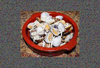 - Lavar bien las almejas en agua fría con sal. - Pelamos y fileteamos los dientes de ajo, los ponemos en la sartén junto con el aceite a fuego suave, cuando estén ligeramente dorados añadimos las almejas. - Cuando las almejas estén abiertas añadimos la guindilla y las gulas, dejamos un par de minutos a fuego suave y ya estarán listas para servir.