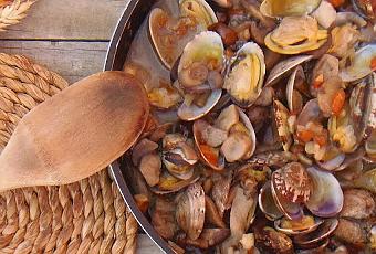 INGREDIENTES300 gr. de almejassetas variadas3 cucharadas de aceite de oliva1 cebolla pequeña1 pimiento rojo italiano2 dientes de ajo1/2 vasito de vino blanco1 guindilla cayenasalEn una sartén calentamos el aceite y sofreímos la cebolla, el ajo y el pimiento bien picaditos, cuando ya estén añadimos las setas, echamos la sal y la guindilla y dejamos que se hagan, vertemos el vino blanco y dejamos reducir bastante, pero sin que se consuma todo el líquido, en éste punto añadimos las almejas y cuando se abran ya tenemos nuestro plato listo.