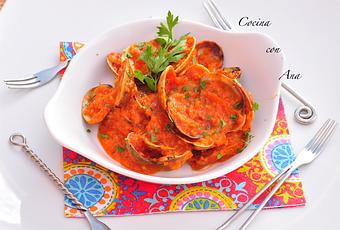 Esta receta de almejas la he repetido éste verano varias veces, a mí personalmente me encantan las salsas que llevan almendras u otros frutos secos, y además es una receta ideal para tomar con una cervecita fresca o un vino blanco fresquito, está tan rica fría como caliente y se puede tener hecha con antelación si tenemos invitados, de hecho está más buena si pasa un día hecha.