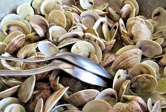 - Pondremos las almejas en remojo en agua fría con un puñado de sal durante 2 horas. Cambiamos un par de veces el agua.