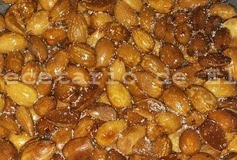 - Si las almendras tienen la piel, antes de freírlas tendremos que quitársela, para ello ponemos agua a hervir y metemos dentro las almendras unos 3 minutos, las sacamos y pasamos por agua frí, la piel se despegará fácilmente al apretar cada almendra entre el dedo pulgar y el indice. Las secamos un un trapo de cocina.