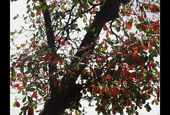 Elalmendro malabar,almendro de los trópicos,falso kamani, o almendrón es un planta común en el municipio Maracaibo, Venezuela., expandiéndose en los trópicos y susbtrópicos como cultivo entre los ciudadanos. También, lo podemos ubicar en Asia, Australia, Polinesia. De nombre científico Terminalia catappa, es un árbol caducifolio comprende una altura de 20 a 25 m. Pertenece a la familia Combretaceae. Las hojas agrupadas de tonalidad verdes un poco oscuras hasta tornarse un color anaranjado (dependiendo de la estación del año). Sin pétalos, peciolo grueso, inflorescencias axilares, numerosas flores monoicas. El característico fruto es carnoso, ovoide alargado mide hasta 7 cm, es drupáceo (fruto de mesocarpo –medio- carnoso rodea al endocarpo, a veces llamado “hueso”; algunos ejemplos son: la aceituna, mango, cereza, entre otros), de color primero verde después rojo (rojo verdoso) en la madurez, y contiene una almendra.