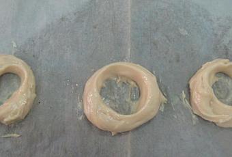 Preparación: Calentar el agua, la sal, el aceite de girasol y el azúcar. Cuando rompa el hervor añadir de golpe la harina, a la que le habremos agregado el impulsor; mantener a fuego muy suave y trabajar unos minutos hasta que la mezcla esté fina y se desprenda de las paredes del cazo. En este punto retirar del fuego, dejar enfriar unos momentos para evitar que los huevos se nos puedan cuajar al agregarlos. Una vez ha perdido el excesivo calor, agregar los huevos de uno en uno, de manera que hasta que no esté bien incorporado uno no se agrega el siguiente. Dejar reposar la masa 10 minutos y seguidamente con una cuchara poner pociones lo más iguales posibles sobre una bandeja de horno con papel. Una vez puestas todas las porciones, mojar el dedo índice en aceite de girasol y hace un hueco en el centro para formar la rosquilla. Una vez formadas, cocer en el horno a 180º-190º C, hasta que estén doradas y luego mantener 10 minutos con la puerta del horno abierta. Así se secan y no se bajan. Seguidamente pasar por abundante azúcar granillo y dejar enfriar sobre rejilla