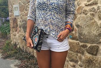 Short: Zara || Jersey: My Dreams of Seams || Bolso: Suiteblanco, similar || Alpargatas de flores: Himay Zapatería y Complementos ||Gafas de sol: Molini Sunglasses || Pulseras: Siempre a tu gusto y Jata Parda