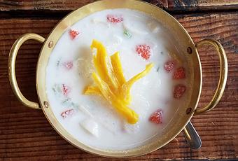 Cuando Saralai Sarapaivanit, que pasa junto a Jackie, se mudó a los EE. UU. Desde Tailandia hace varias décadas, no pudo encontrar muchos restaurantes haciendo tina tim krob, una delicia de sopa fría con pedacitos de jalea de pandan que se menean en una base de leche de coco apenas dulce junto con trozos de castaña de agua crujiente. Tampoco pudo encontrar muchos lugares para comprar calabaza dulce al vapor, pequeñas latas de crema de coco con maíz y perlas de tapioca en el fondo, o brillantes. luk chup Un dulce parecido al mazapán hecho con frijol mungo y moldeado para que parezca mini melocotones y tomates cherry. Así que ella y su cuñado abrieron Khao Nom, una panadería en Elmhurst, Queens, donde hacen la suya propia. Eso es solo una pequeña muestra de la selección de postres fríos y calientes servidos en este espacio de techo alto y relajado, donde las mesas son enormes losas de madera desgastada sobre bases de máquinas de coser antiguas. Quédese para pasar la noche y degustar el breve menú de platos de arroz de la panadería, o visite el restaurante tailandés Khao Kang, que está al lado.