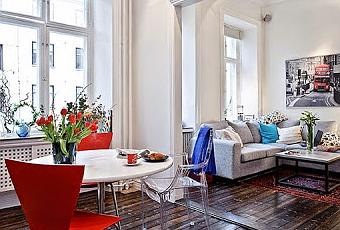 La inspiración de hoy viene de la mano de un pequeño apartamento de sólo 38 metros cuadrados en el que destacan la continuidad visual de los ambientes, el suelo de oscura madera de abeto en contraste con las blancas paredes y el altillo en el que se ubica la zona de dormir.