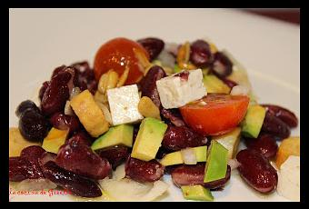 Hola chicos, hoy os traigo otra receta de los amigos de Buyfresco. Una receta apta para vegetarianos y que está muy bueno. Una forma sana y a la vez diferente.Espero que os guste esta receta.Ingredientes400gr Alubias rojasQueso en dadosPipas peladasAguacates2 Cebollitas francesasTomates CherrysCroutonsSalYAceite de oliva
