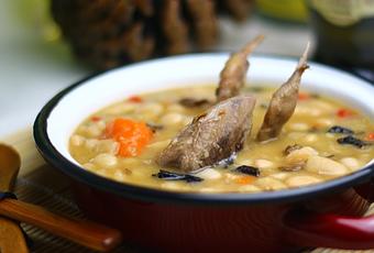 5.- Incorporar el guiso de las codornices a la cazuela de las alubias y cocer 10-15´a fuego lento para que se mezclen los sabores.