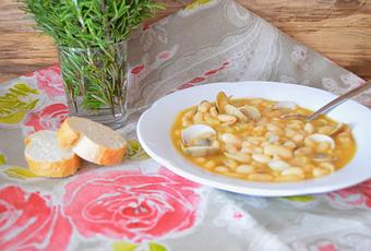 Cinco minutos antes de que terminen de hacerse las alubias incorporamos las almejas, batimos las verduras y se las añadimos, probamos de sal y le damos el último hervor.