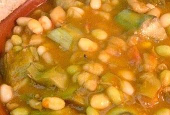 - Un tarro de alubias pochas precocidas, yo he usado la marca Gutarra, son 400 gr. Pueden ser alubias normales - 11 alcachofas.- 6 sepias medianas blancas, ya limpias sin piel- 5 tomates pera- 2 cebollas medianas- 2 dientes de ajo- 1 litro de pescado, yo he usado el de la marca Aneto- 1 cucharadas soperas de pimentón dulce- 1 limón- Aceite- Sal- Hoja de laurel- Pan para la salsita