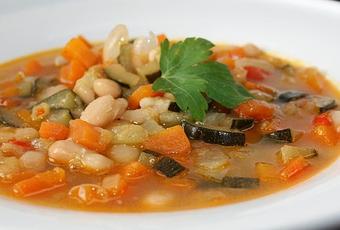 Ingredientes:Alubias blancas (200 gr.)1 calabacín pequeño2 zanahorias1/2 cebolla2 dientes de ajo1/2 pimiento rojo1/2 pimiento verdeuna pizca de curryuna pizca de pimentón dulceAove y salCaldo de verdura
