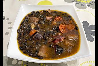 Con el frío que está haciendo estas semanas, no hay nada que nos apetezca más que los guisos, y la verdad es que con la Crock Pot quedan genial, llenos de sabor y encima son comodísimos de preparar, ¡la olla es la que hace todo!Ingredientes para 2 personas:- 180 gr de alubias negras- 1/2 cebolla- 1 diente de ajo- 1 patata- 1 zanahoria- 1 chorizo- 1 morcilla- 1 trozo de lacón- Caldo de pollo- SalReceta: - Pon en remojo durante 12 horas las alubias negras en un bol grande con agua.- Lava y pela la patata y la zanahoria.- Córtala en trozos chascándola.- Corta la zanahoria en rodajas.- Pela la cebolla.- Introduce en la olla las alubias escurridas, la patata, la zanahoria y la media cebolla.- Añade el chorizo, la morcilla y el lacón.- Vierte el caldo de pollo hasta que cubra 2 dedos por encima de todos los ingredientes.- Espolvorea un poco de sal y mezcla bien.- Cocina en ALTA durante 8 horas.- Cuando esté listo, saca la cebolla y unas pocas alubias y bátelo con la batidora.- Añádelo a la olla y mezcla todo bien.