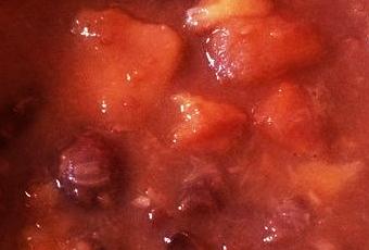 - ...echamos el caldo de pescado y una hoja de laurel junto con el pimiento choricero que habremos tenido a remojo el mismo unas dos horas.