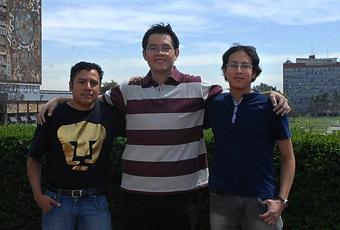 Gilberto Gómez Correa, alumno de décimo semestre de la carrera de física, y Luis de Jesús Martínez Lomelí y Jesús Pérez Juárez, de octavo semestre de matemáticas y biología, respectivamente, formaron parte de la delegación que asistió recientemente a la competencia para representar al equipo UNAM-IPN.