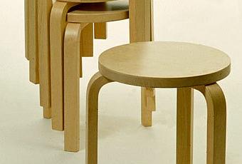 Stool. Nº 60. Taburete apilable de tres patas. Se hizo famoso porque presenta una técnica de producción en las patas revolucionaria que permitía curvar las patas de madera maciza para que se sujetaran por primera vez directamente a la parte inferior de un asiento sin necesidad de estructuras adicionales. Aunque su diseño es de los años 30 no puede ser más actual.