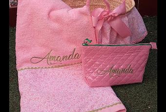 Amanda baja a la piscina a diario, así que, pensaron en un conjunto de capazo, toalla y neceser.