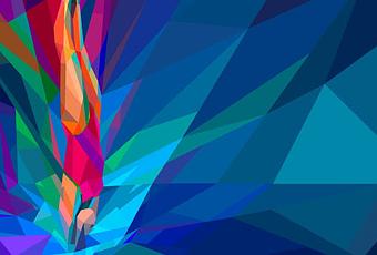 La portada de Salto al color es una obra del ilustrador griego Charis Tsevis, que captura con su geometría cromática el espíritu poliédrico del disco.