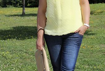 Los colores pasteles son un clásico de tendencias todas las temporadas de primavera - verano, son colores muy dulces, femeninos, frescos. En mi armario hay unas cuantas prendas de este color, muy favorecedor en esta época del año ya que nuestra piel esta un poco bronceada. Mi blusa es muy pastel, es de mi tienda online. Me encanta con esos puntitos en hilo y para combinar ha sido muy fácil vaquero y complementos en beige.