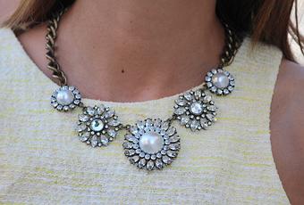 Este es el look que me puse el sabado después de estar todo el dia tomando el sol, que bien se está en verano!!! La verdad es que ya se me nota un poco el morenito jejeje . Un outfit sencillo combinando mi vestido nuevo de rebajas en tweed amarillo y zapato mostaza, complementado con mi nuevo collar (también de rebajas) y mi bolso réplica del bolso Céline.Muchas gracias por los comentarios