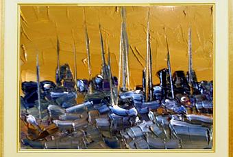 " Amarres en el puerto ".óleo espátula lienzo. 2017.12 x 10 cm.detalles.Estudio taller
